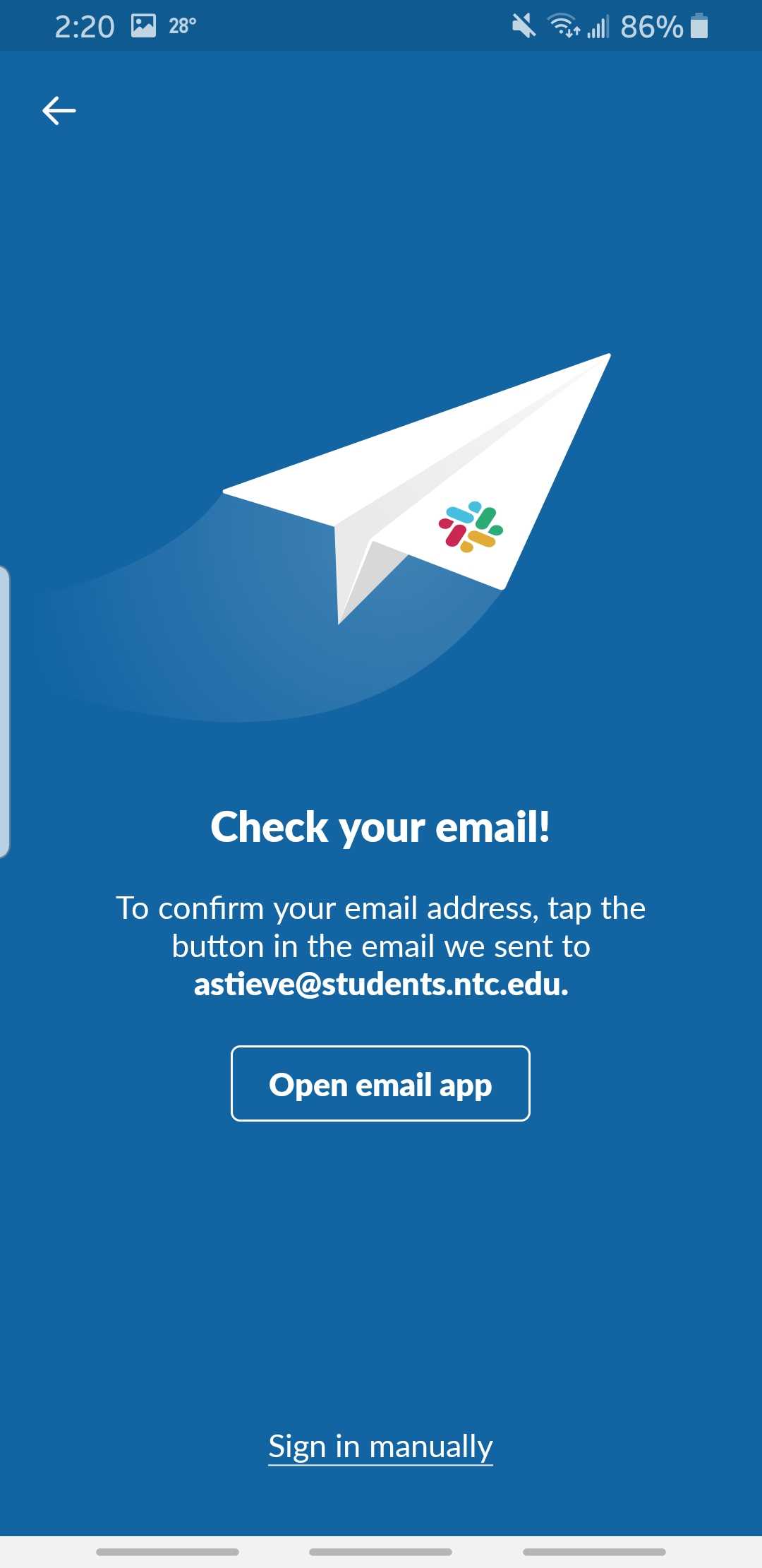 After tapping the "Email me a magic link" button, enter your email address you used to create your Slack account.