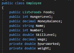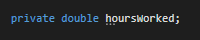 To make a field private, simply change the public on a field definition to private. Since we only want the Employee to be controlling their HoursWorked let's make that field private.