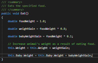 Method comments auto generate and should be used to describe what the method does without being too specific since the method could be used in several different ways.